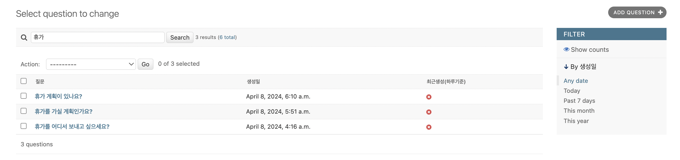 search_fields: 질문 제목 또는 선택(대답)으로 검색