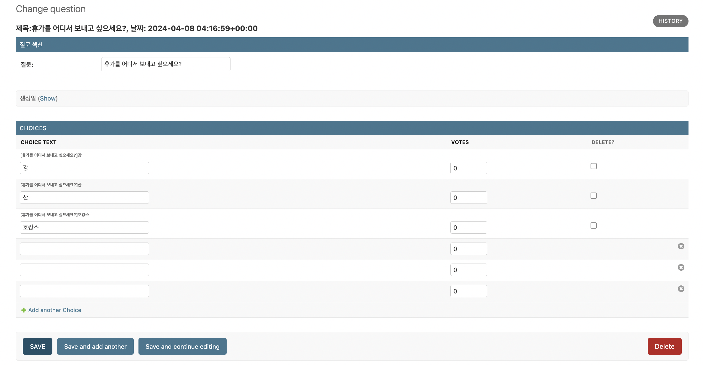 inlines = [ChoiceInline] #질문안에 바로 선택(대답) 확인